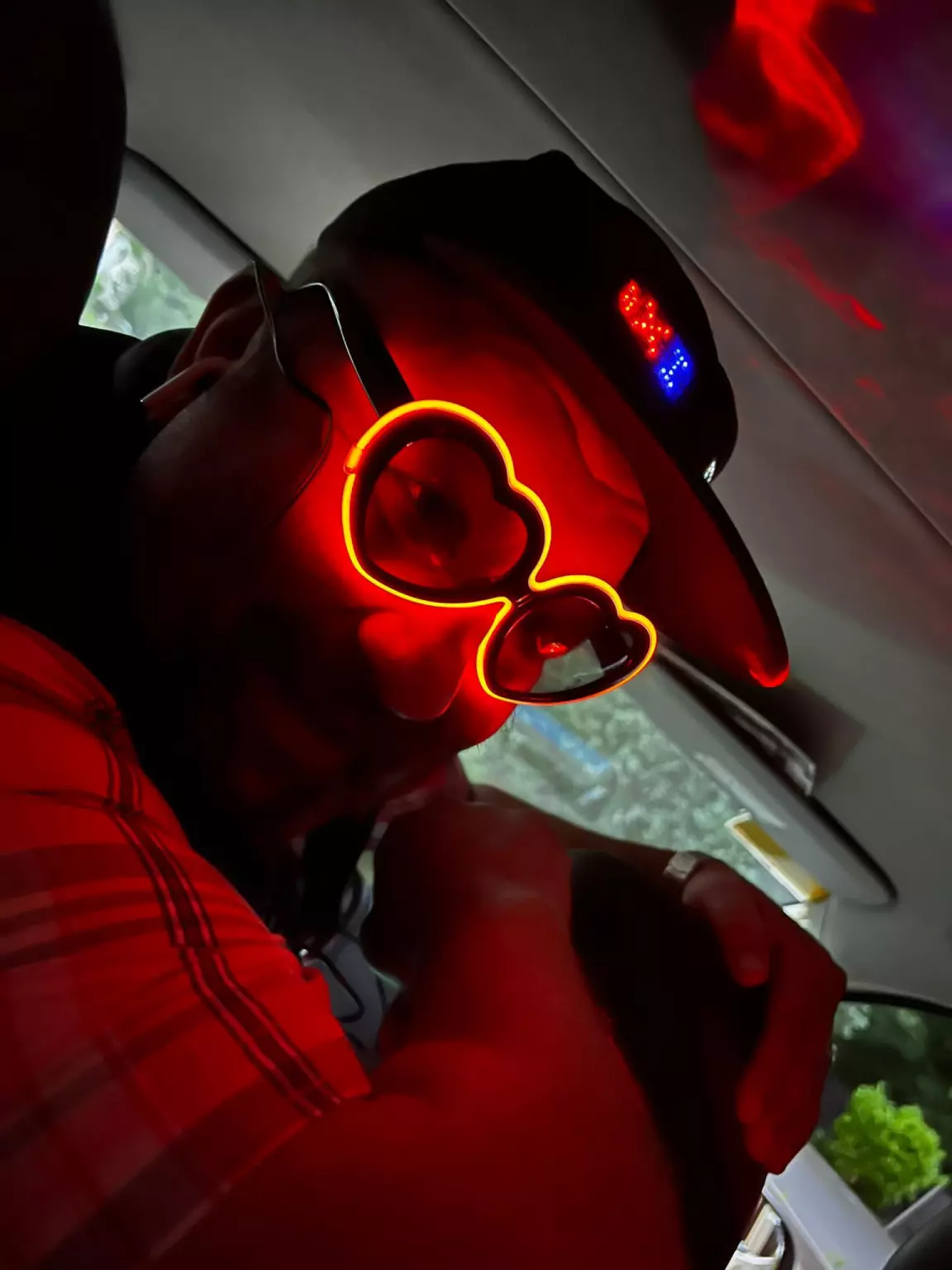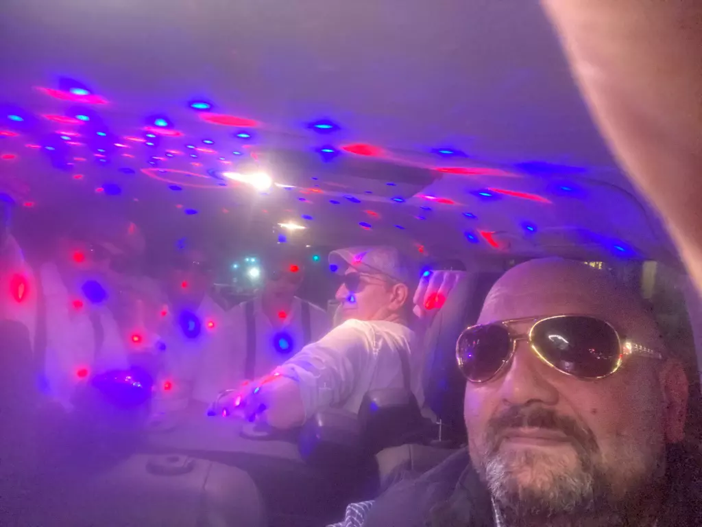 Von innen eine rollende Disco 🕺 mit bunten schrillen Lichtern einer Karaoke Anlage ,